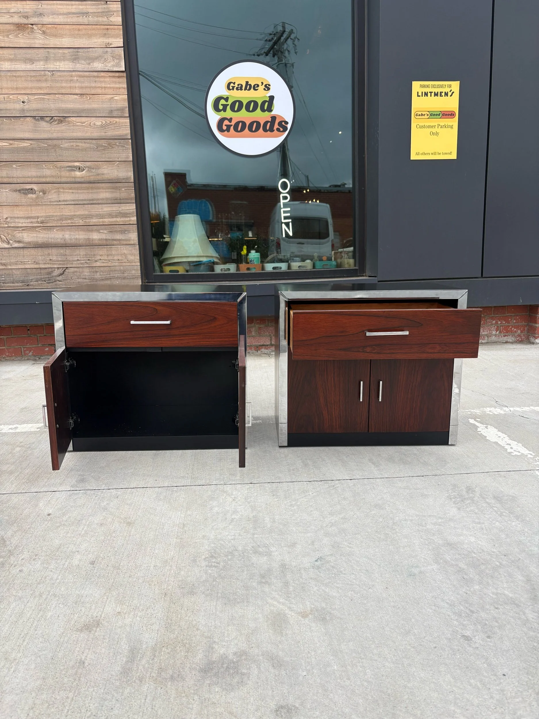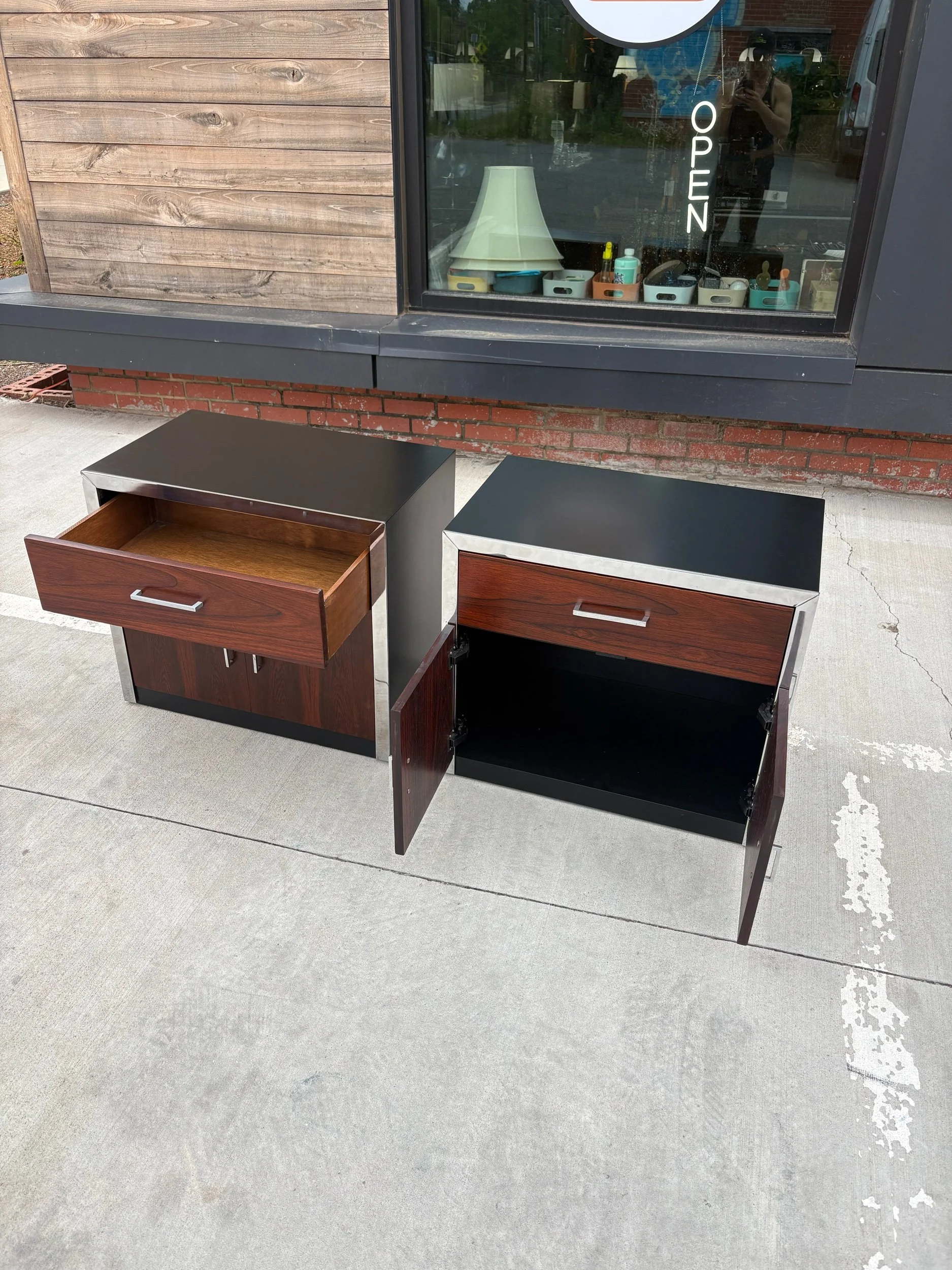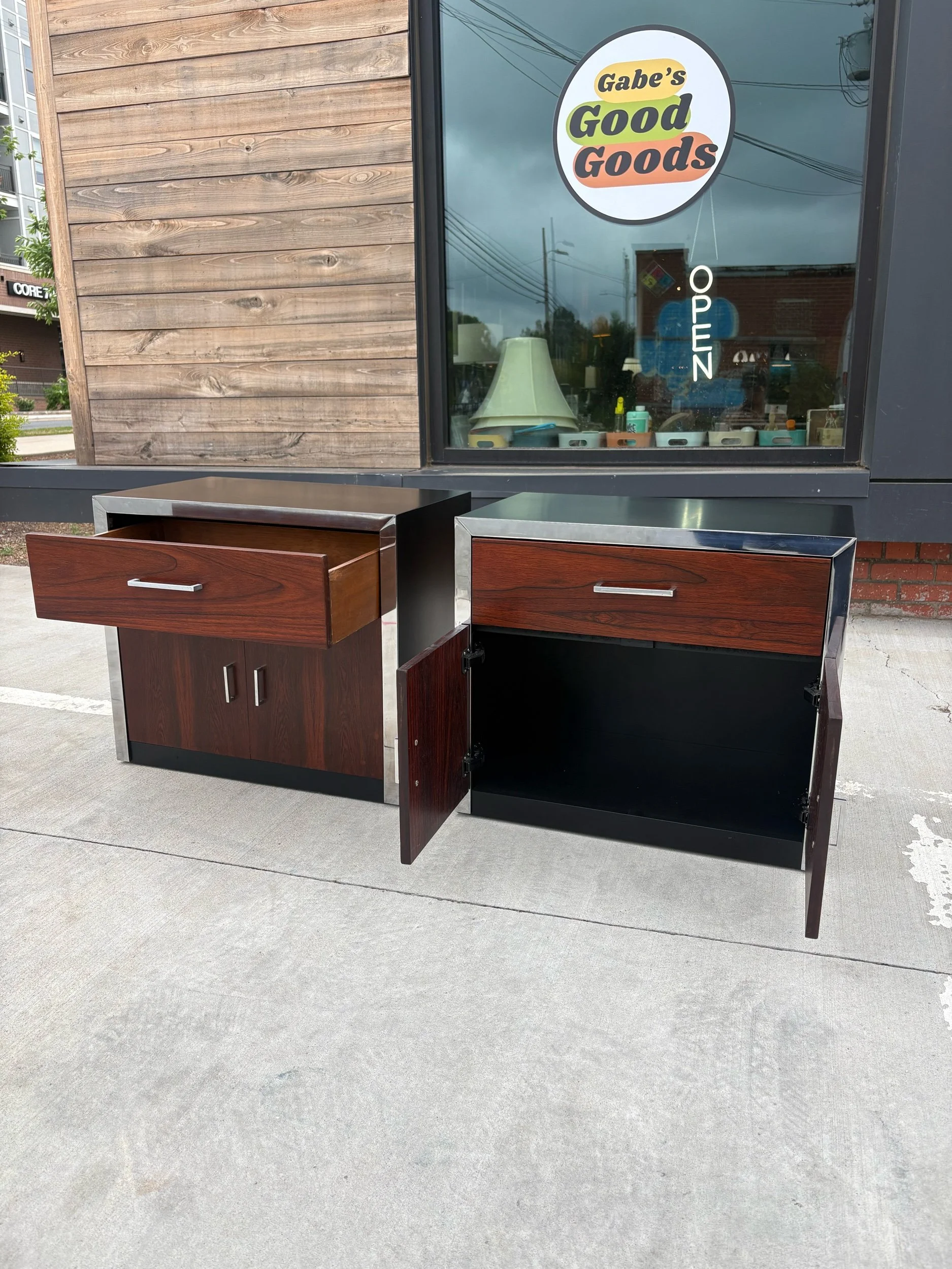 Pair of Rosewood & Chrome Nightstands by Milo Baughman