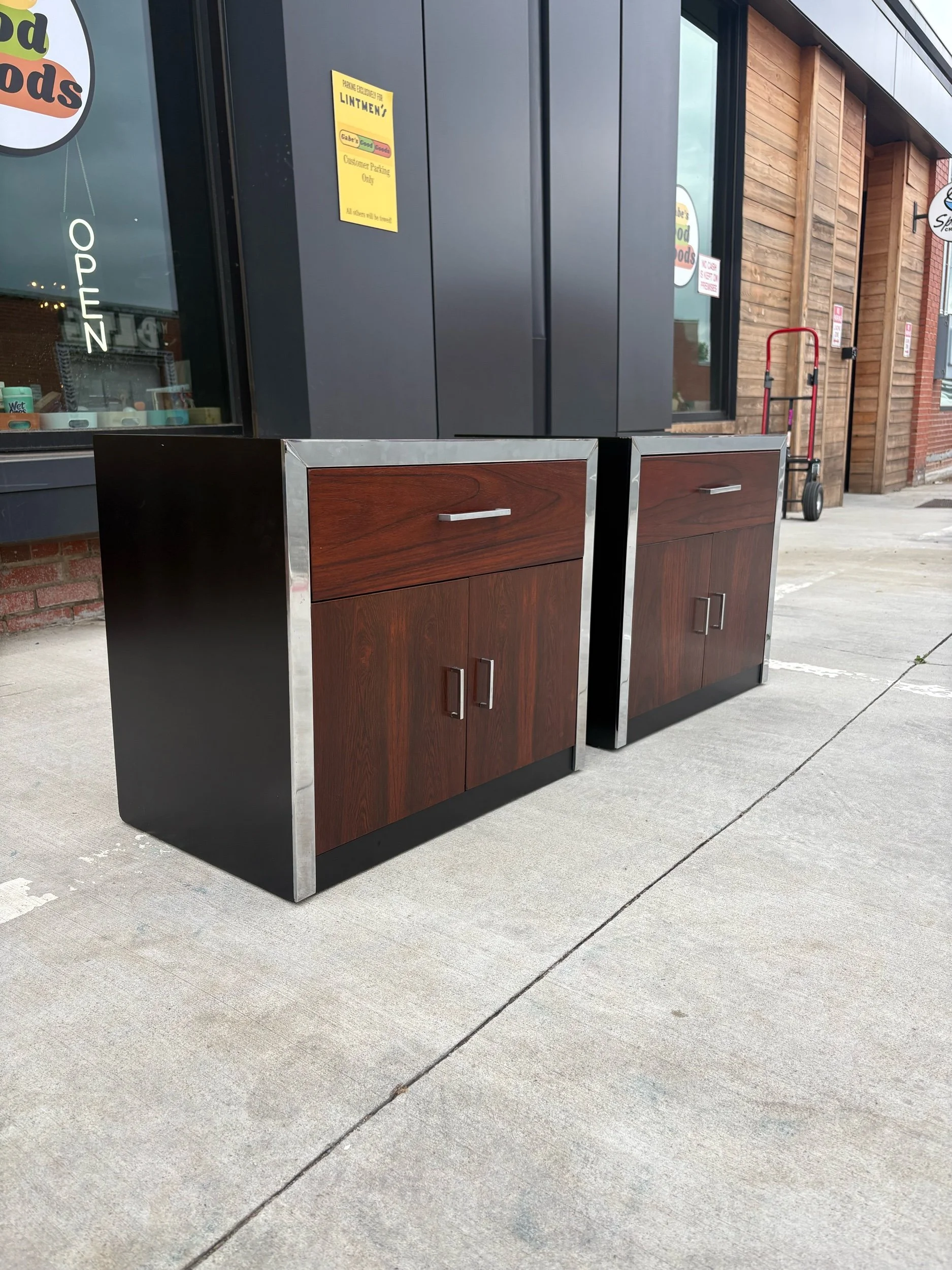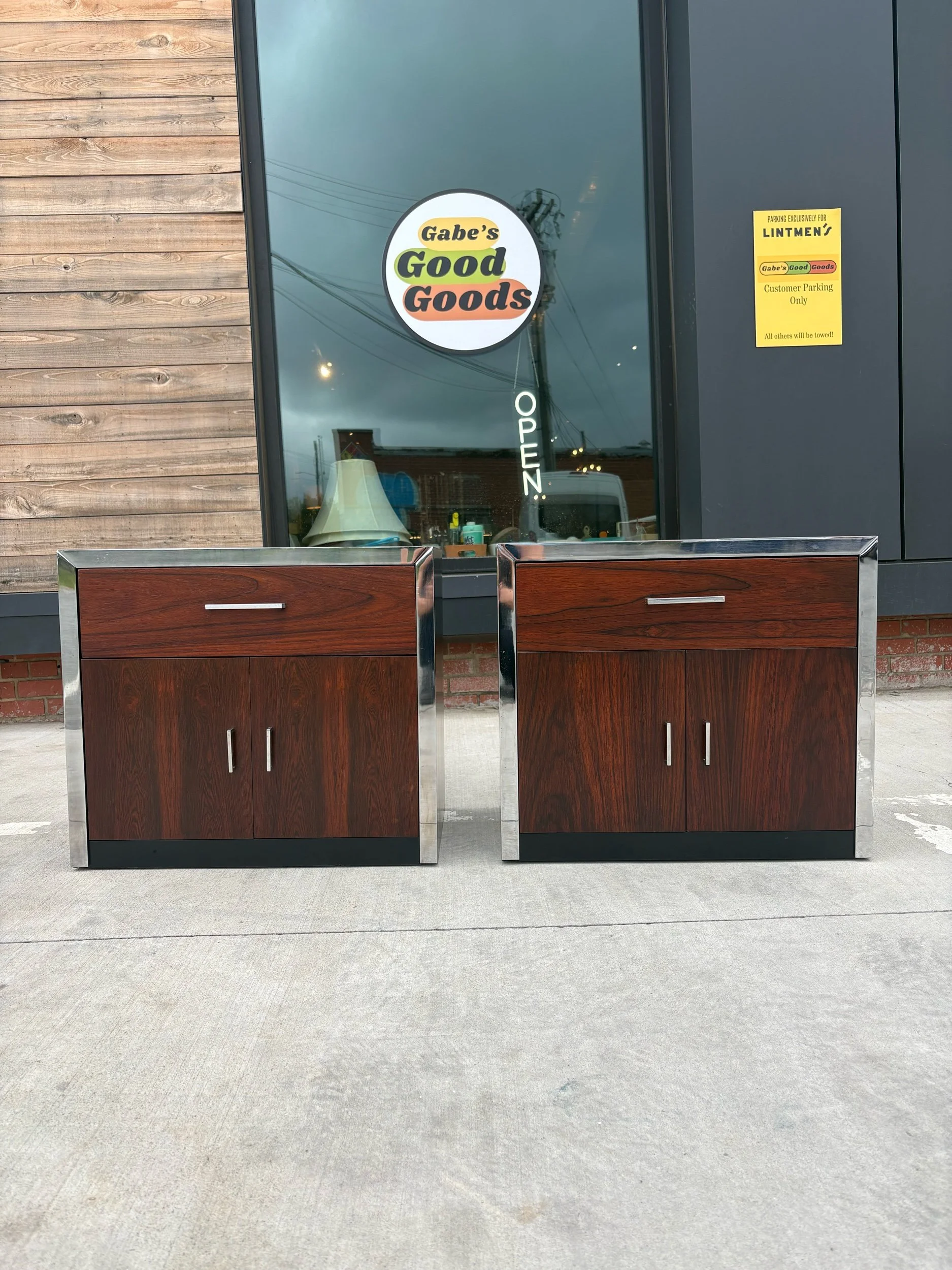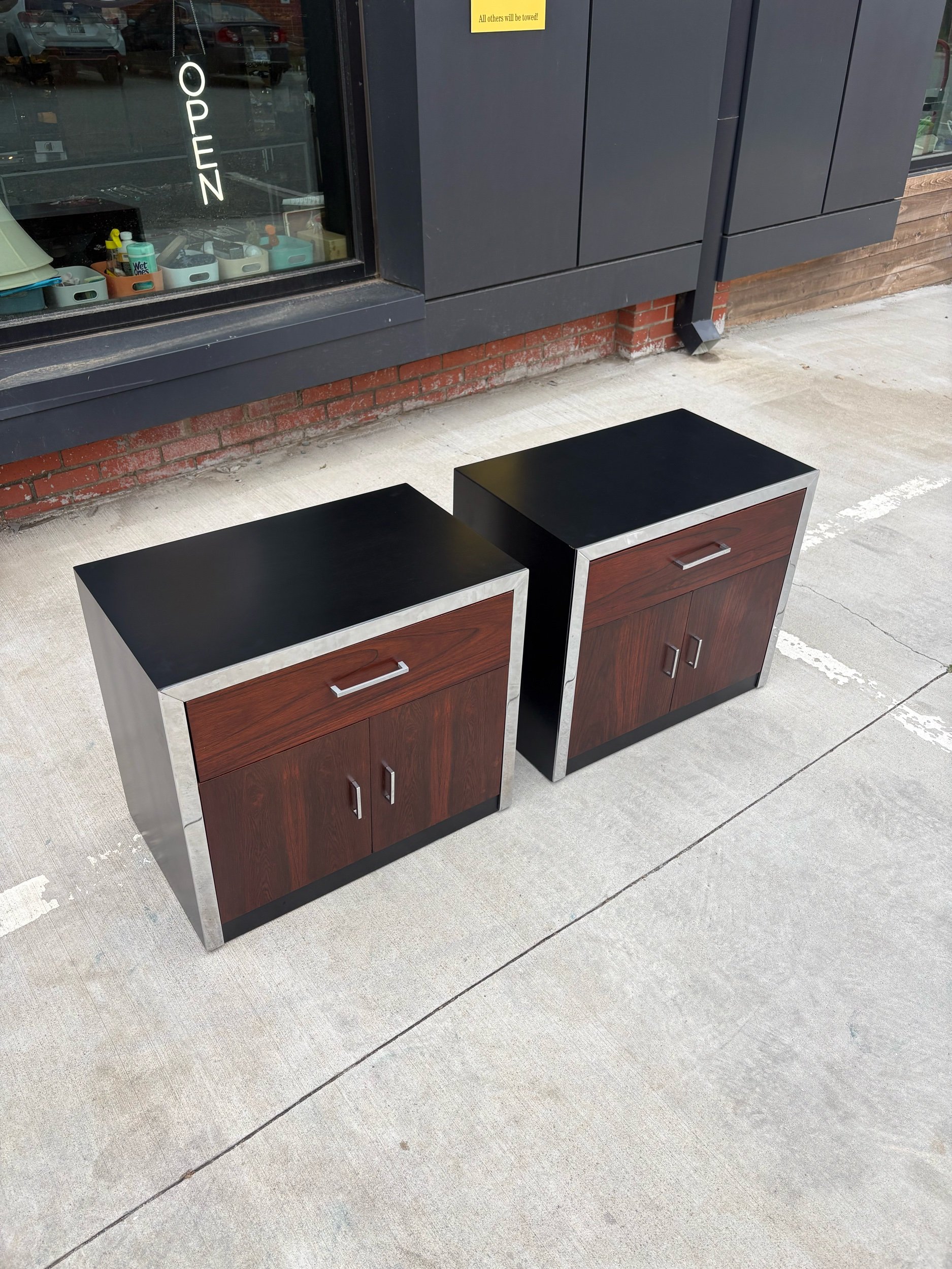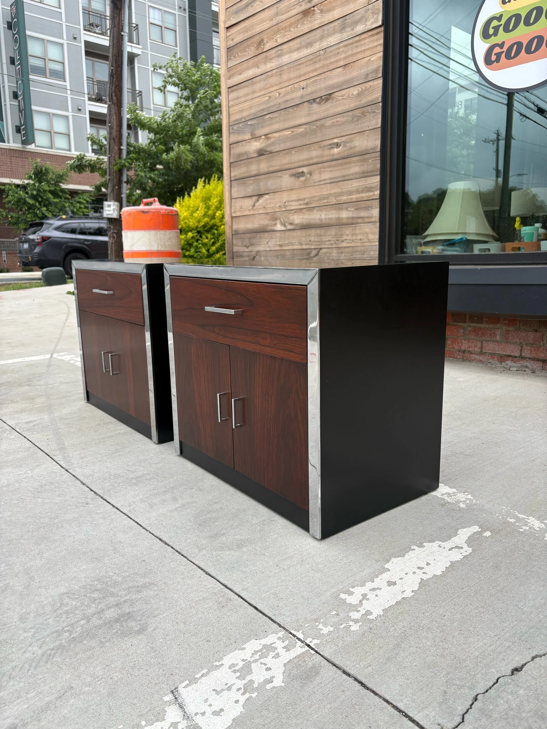 Pair of Rosewood & Chrome Nightstands by Milo Baughman