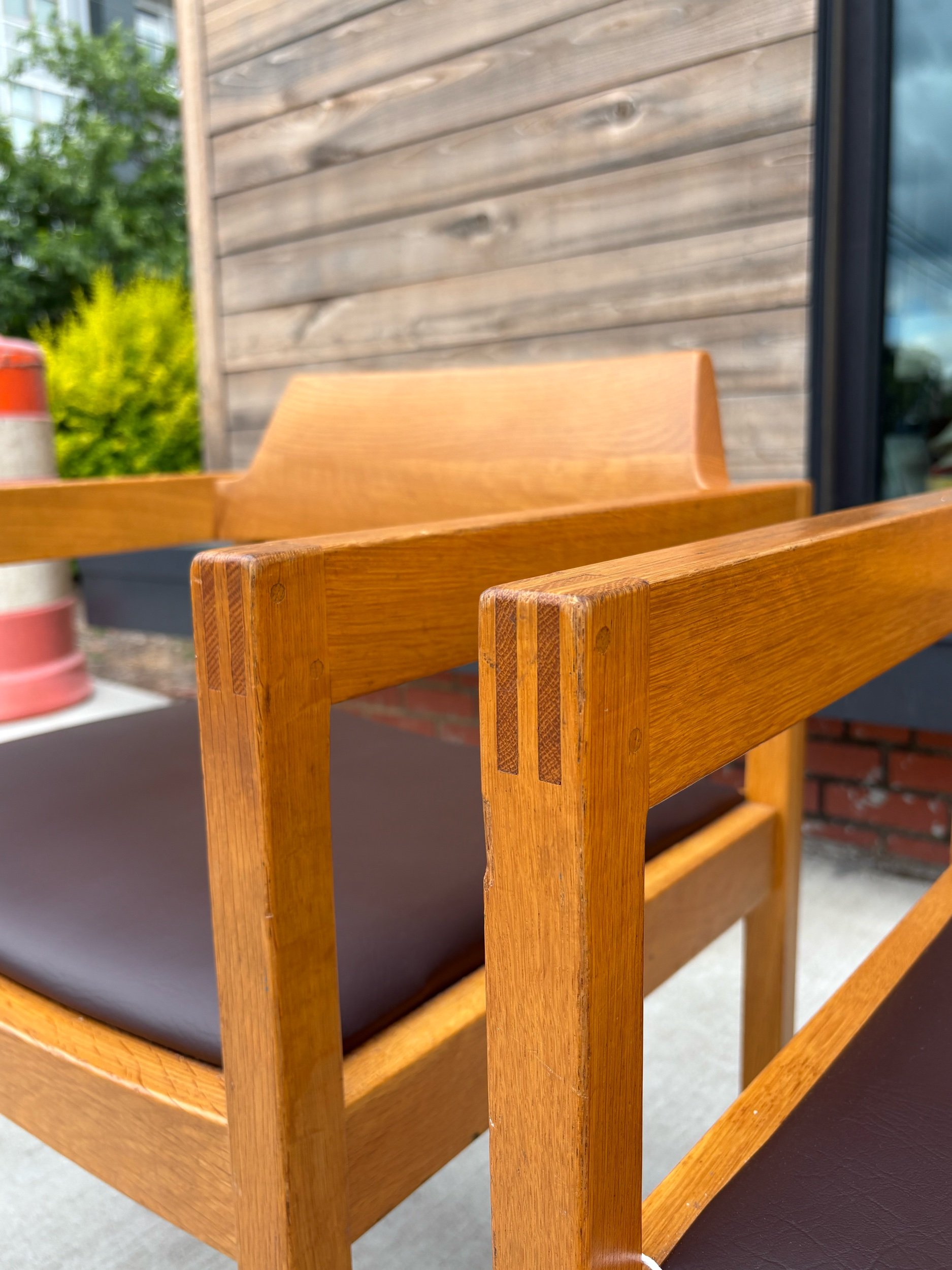 In great vintage condition. No structural issues. Some minor wear to the finish. Upholstery is in great condition without any tears or picks.