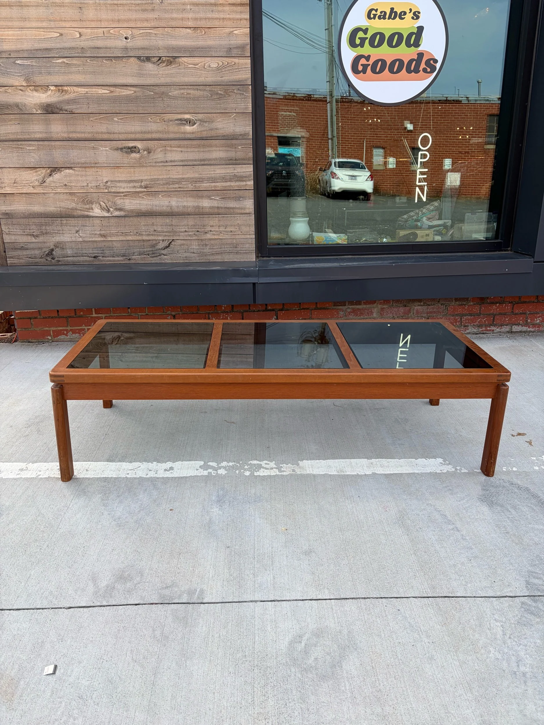 In great vintage condition. Structurally sound and can safely carry a lot of weight. Some wear consistent with age and use. Present beautifully regardless of the wear.