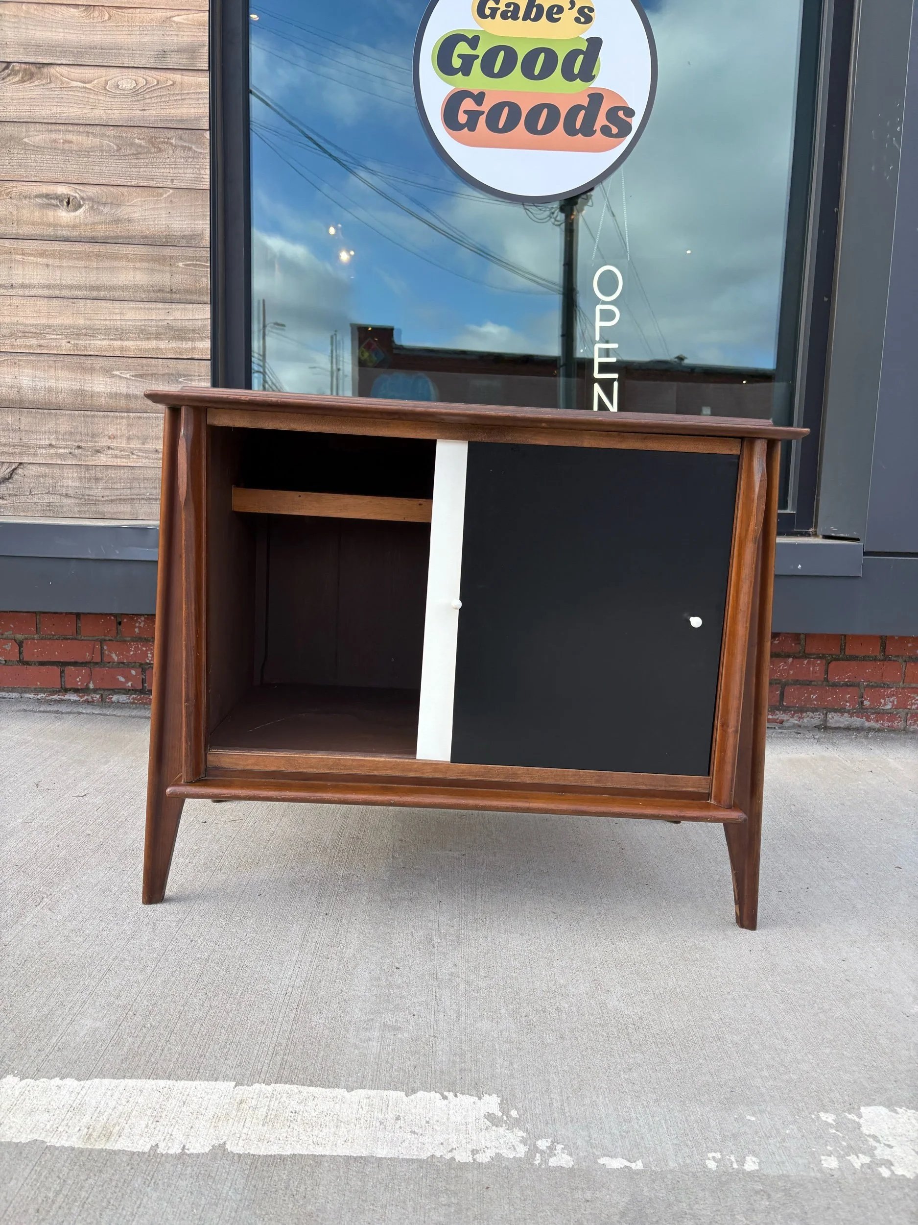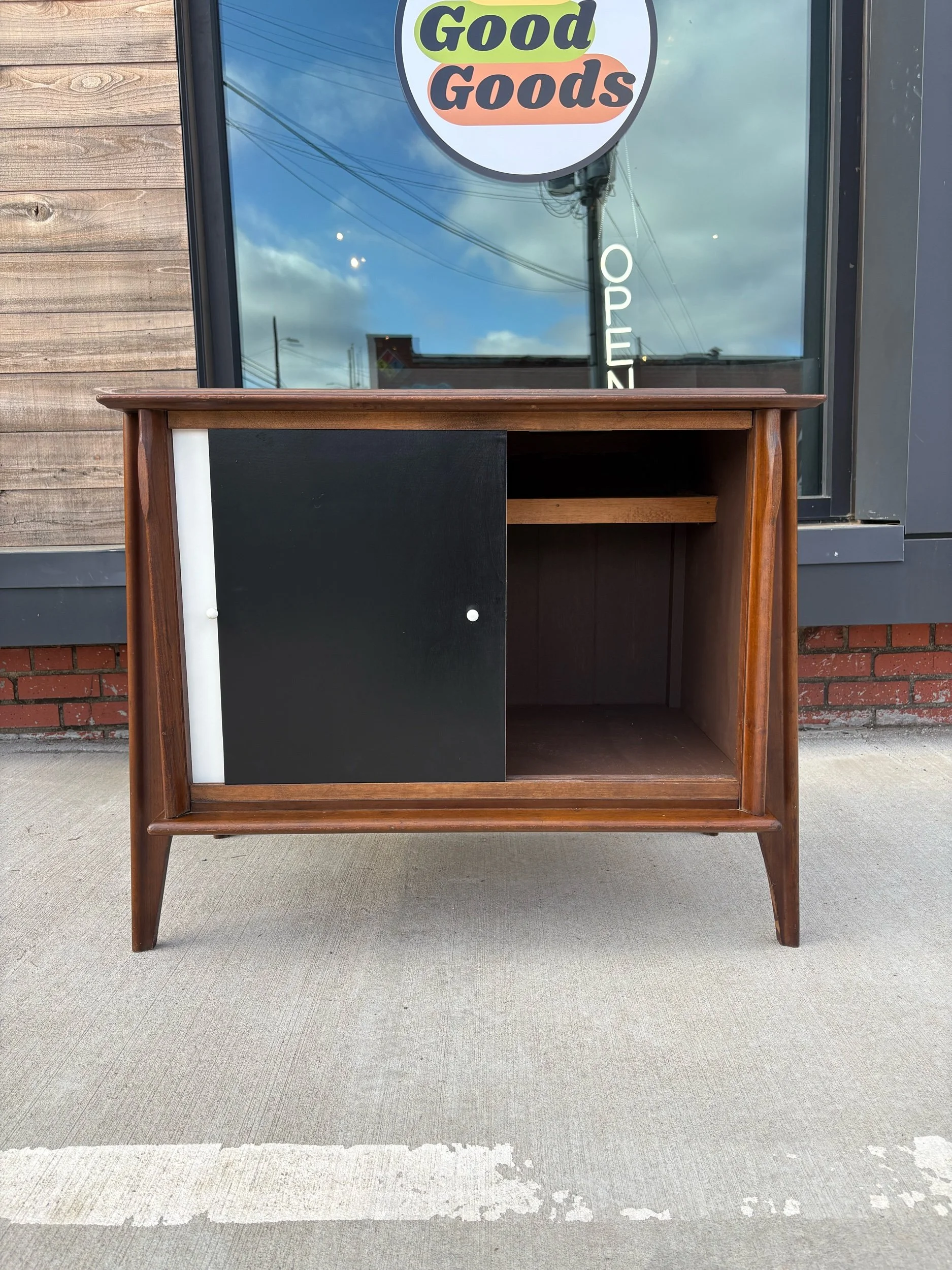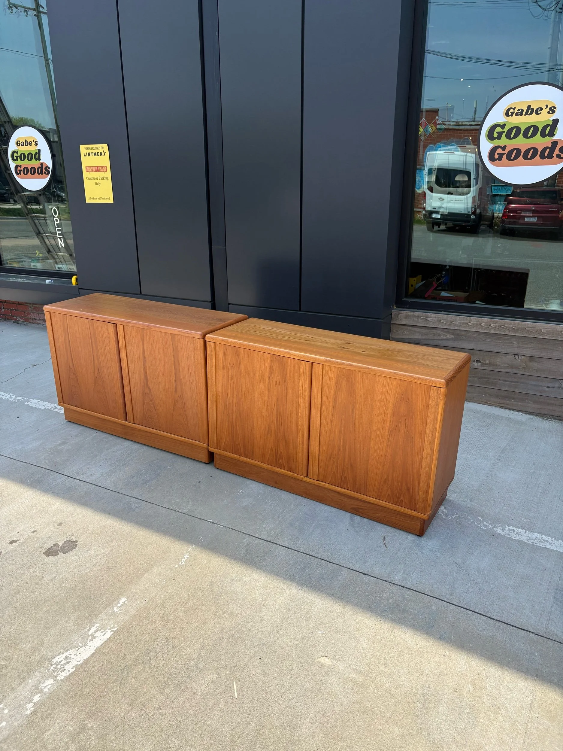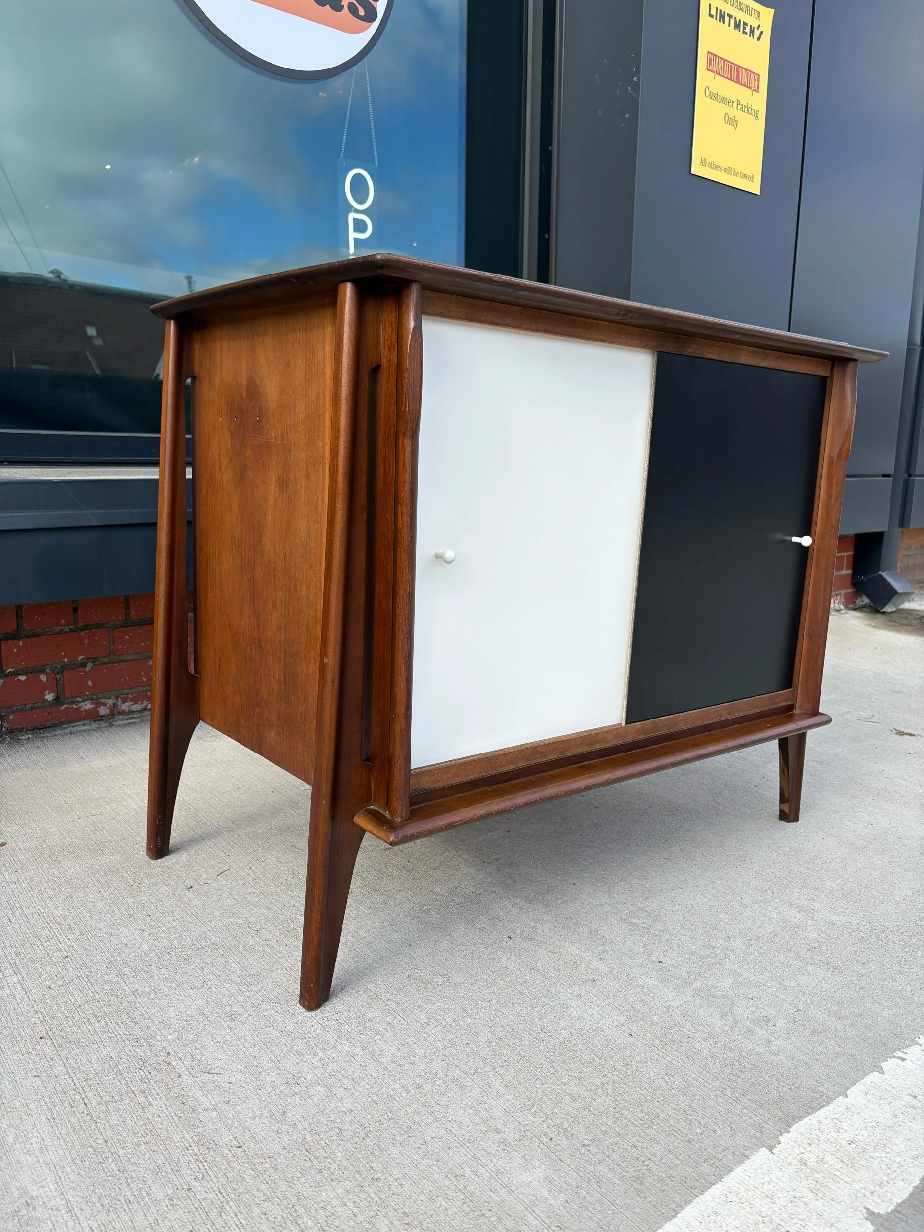 We have two of these available. Both are in good vintage condition. Some minor wear to the finish. Veneer is in good shape and both are structurally sound. Doors function as the should, and shelves are sturdy.