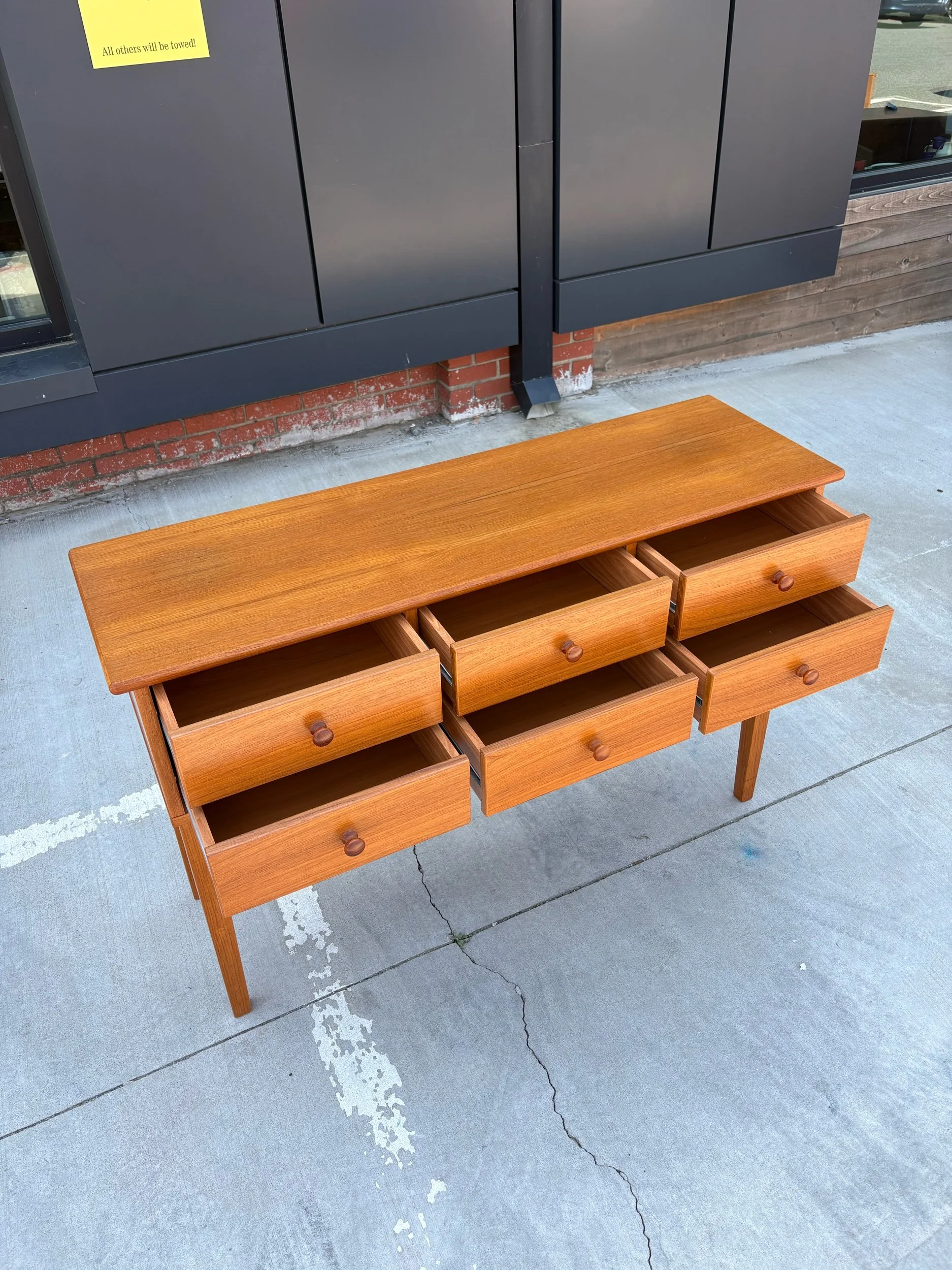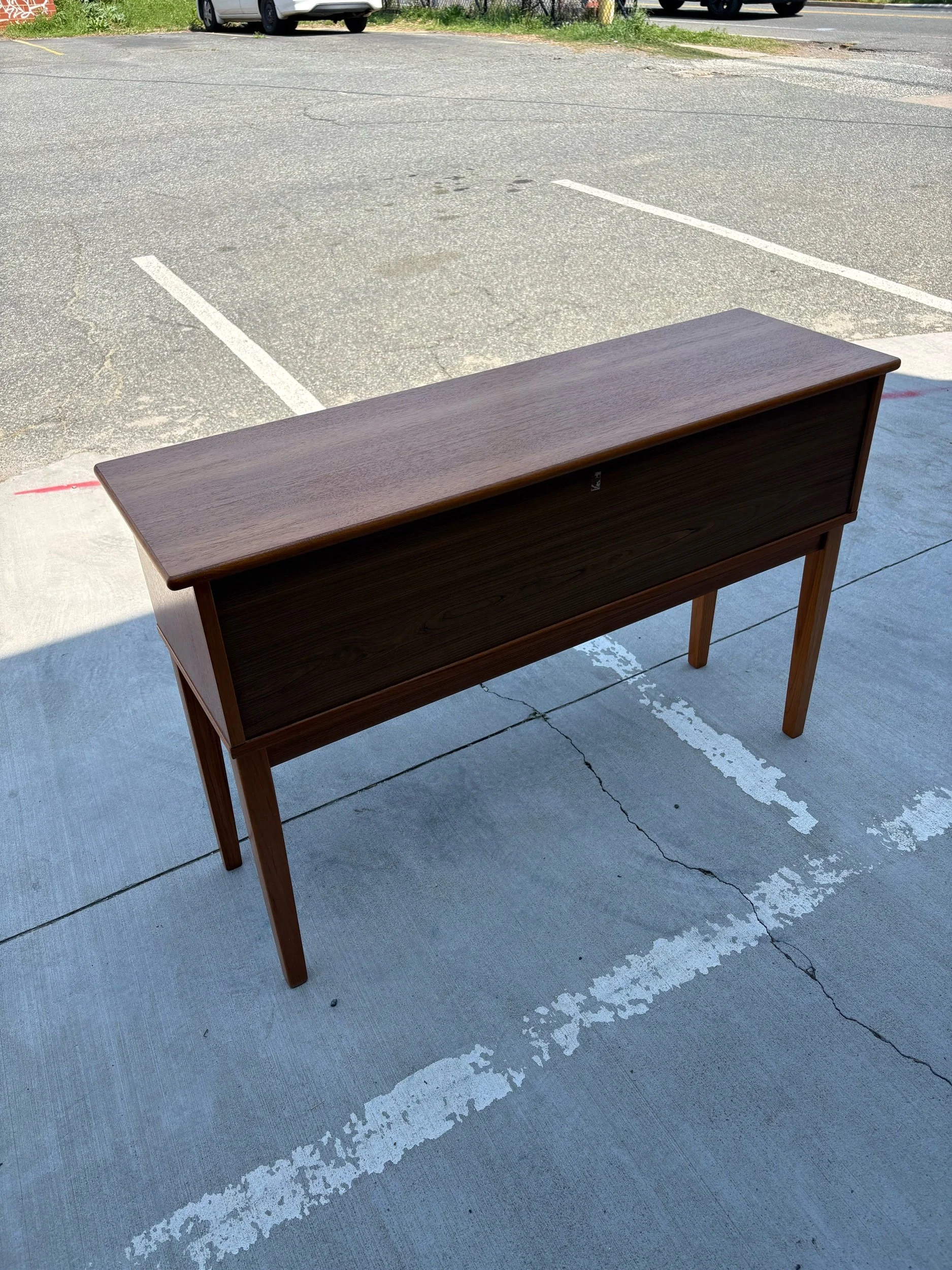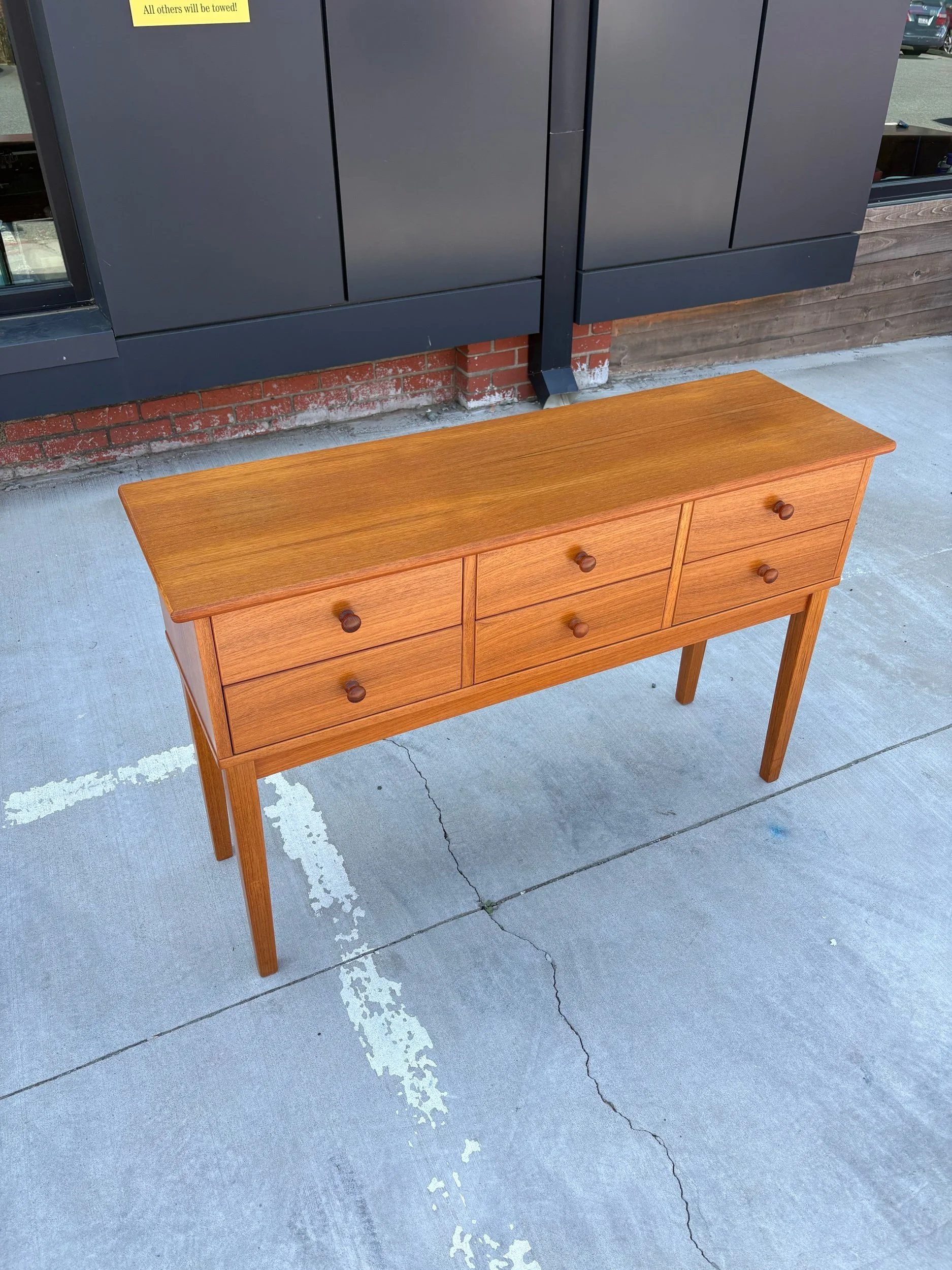 Cute vintage Danish teak sofa/ console table with six drawers.